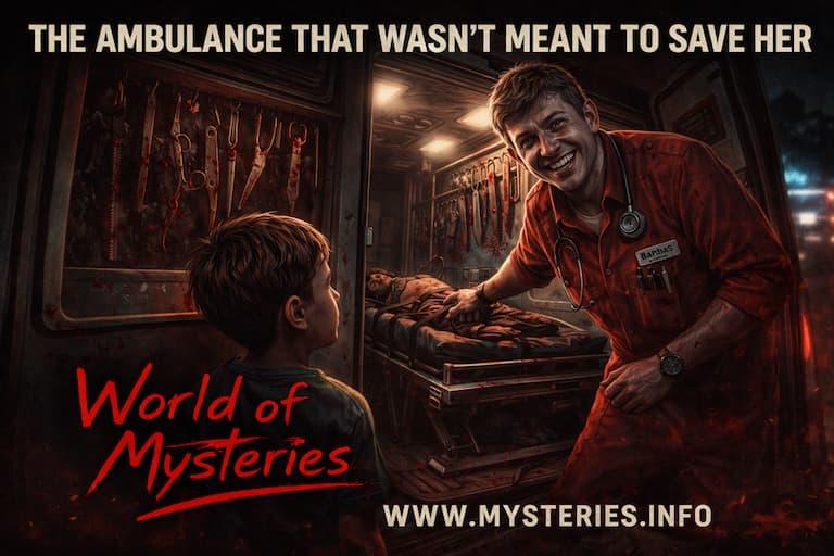 They loaded her into the back of a black ambulance, and that was the moment something inside me cracked. I looked past them and saw the tools hanging inside. They weren’t medical. They were sharp, jagged, wrong, like they were made for something else entirely. “We’ll take very good care of your mother,” Barbas said, his voice calm, almost comforting. “Call us when you’re ready to see her again.” He climbed into the back, and the doors slammed shut. The ambulance reversed slowly, like it wasn’t in a hurry at all. I ran after it, waving my arms, wanting to scream for them to stop. But I didn’t. I was eight years old. Who was I to question professionals? So I just stood there, watching them disappear.